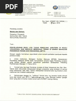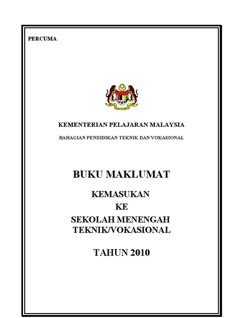 Pengarah Bahagian Pendidikan Teknik dan Vokasional BPTV Zainuren Mohd Nor berkata kira-kira 83 peratus daripada 2273 pelajar lepasan KV berjaya memperoleh pekerjaan dalam bidang. Bahagian pendidikan teknik dan vokasional kementerian pendidikan malaysia aras 5 6 blok e14 kompleks e pusat pentadbiran kerajaan persekutuan 62604 putrajaya malaysia penilaian prestasi performance assessment kertas penilaian ini mengandungi 5 mukasurat bercetak. Untuk maklumat lebih terperinci dan terkini anda dinasihatkan untuk berhubung terus dengan pihak Bahagian Pendidikan Teknik dan Vokasional Kementerian Pendidikan Malaysia.