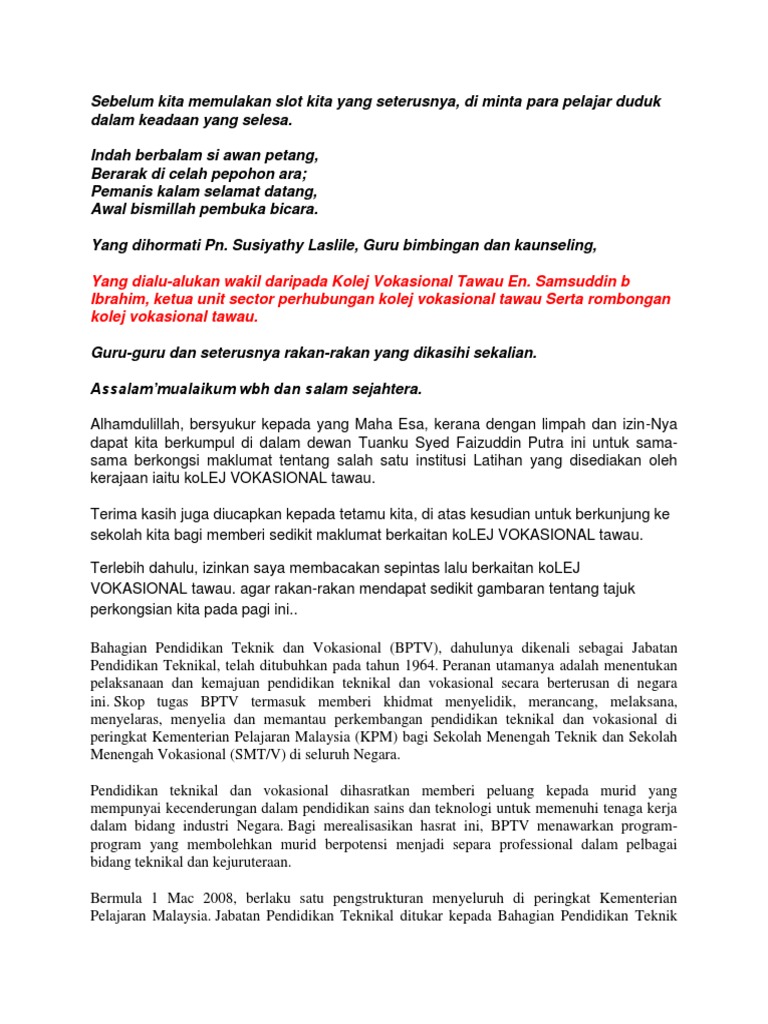 Kementerian itu menekankan Transformasi Pendidikan Vokasional TPV bertujuan mengarusperdana pendidikan vokasional setanding dengan aliran pendidikan perdana. Bahagian Teknik Dan Vokasional. MAKLUMAT TERKINI SEBUT HARGA BAGI MEMBEKAL MENGHANTAR MEMASANG DAN MENGUJI DI MANA BERKAITAN PERALATAN CONVERSION SEKOLAH MENENGAH TEKNIK KE KOLEJ VOKASIONAL DI BAWAH KEMENTERIAN PENDIDIKAN MALAYSIA TAHUN.