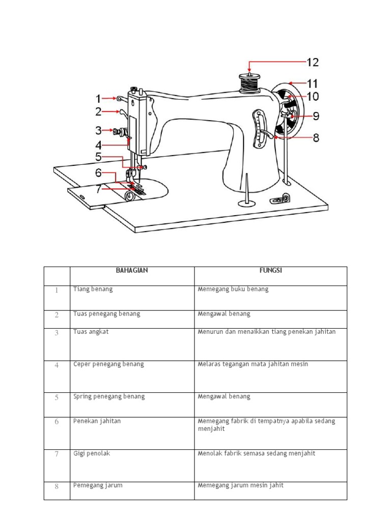 Nama bagian pada mesin jahit biasa dan fungsi nyaTutorial. Ada 11 komponen dalam mesin jahit yang tentunya harus anda ketahui. Jika Anda berencana untuk membeli mesin jahit maka Anda sedang berada di tempat yang tepatDi sini kami akan membahas beberapa macam mesin jahit yang umum digunakan baik untuk industri besar industri rumahan atau konveksi hingga penggunaan rumah tangga biasa.