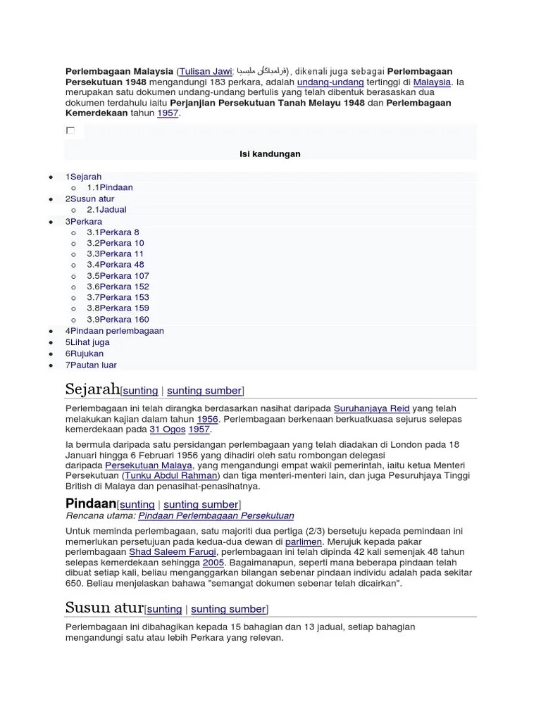 TERDAPAT kumpulan yang menjadikan istilah bangsa Malaysia sebagai satu slogan politik untuk mencabar kedudukan Perkara 153 Perlembagaan Persekutuan. BAHAGIAN III - KEWARGANEGARAAN Bab 1 - Pemerolehan Kewarganegaraan Perkara 14. Perkara 324 pula menyatakan Peruntukan-peruntukan Bahagian 1 dan Bahagian 3 dalam Jadual Ketiga hendaklah dipakai bagi memilih dan memecat Yang di-Pertuan Agong.