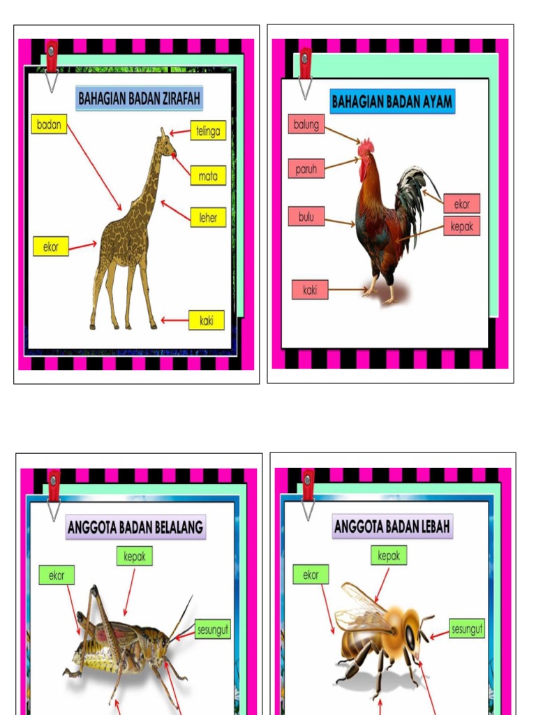 Bahagian-bahagian badan haiwan Persamaan dan perbezaan antara bahagian-bahagian badan haiwan Murid boleh mengenal pasti persamaan dan perbezaan bahagian-bahagian tubuh pada satu haiwan berbanding bahagian tubuh haiwan yang lain serta dapat membuat kesimpulan bahawa terdapat haiwan yang mempunyai ciri yang sama dan berbeza. Mengenal anggota asas bahagian kepala bafan dan kaki. Tetap kuat ya bu ujar salah satu wartawan Rabu 322021.