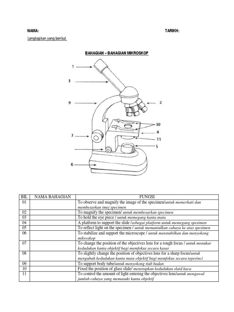 Mikroskop Penerangan Bahagian Dan Fungsi Kerja
