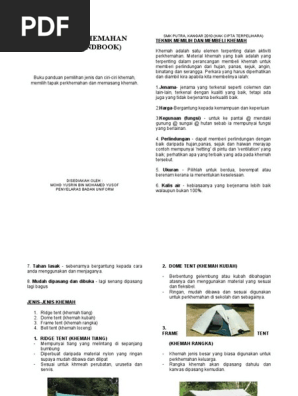 Menerima cabaran dan berasa seronok semasa melakukan aktiviti. 2141 Mengenal pasti bahagian-bahagian khemah pasang siap.