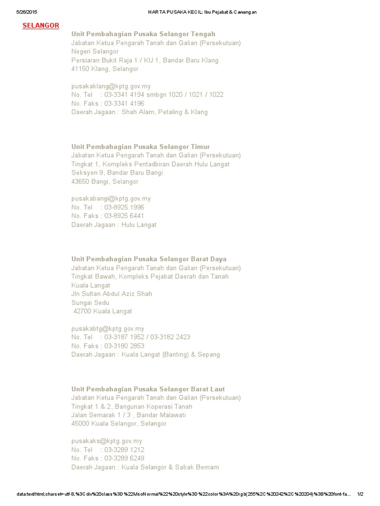 Unit Pembahagian Pusaka Selangor Utara Jabatan Ketua Pengarah Tanah Dan Galian Persekutuan Negeri Selangor 1 Tip From 40 Visitors