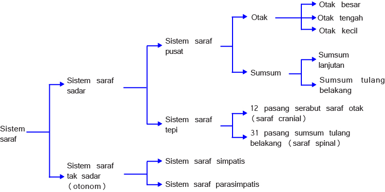 Sistem saraf pusat central nervous system terdiri daripada. Sistem saraf manusia boleh dibahagikan kepada dua jenis. Sistem ini terdiri daripada beberapa unsur yang berfungsi untuk mengekalkan kestabilan tubuh manusia.