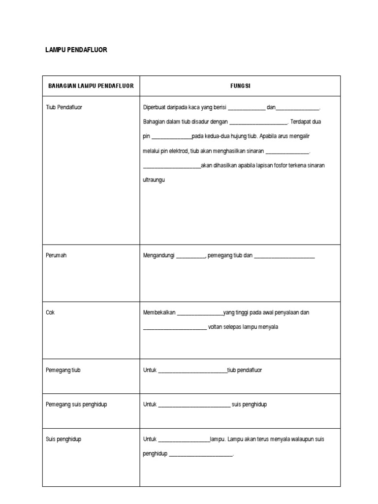 Kemahiran Hidup Rbt Cikgu Shaniza Lampu Pendarfuor