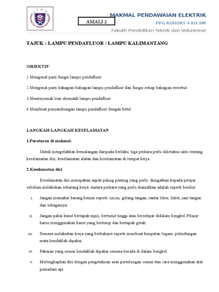 Lampu Docx 1 4 Penyelenggaraan Perkhidmatan M E 1 4 2 Lampu Pendarflour Kalimantang A Bahan Lampu Pendarflour Cok Starter Suis Penghidup Lamp Holder Course Hero