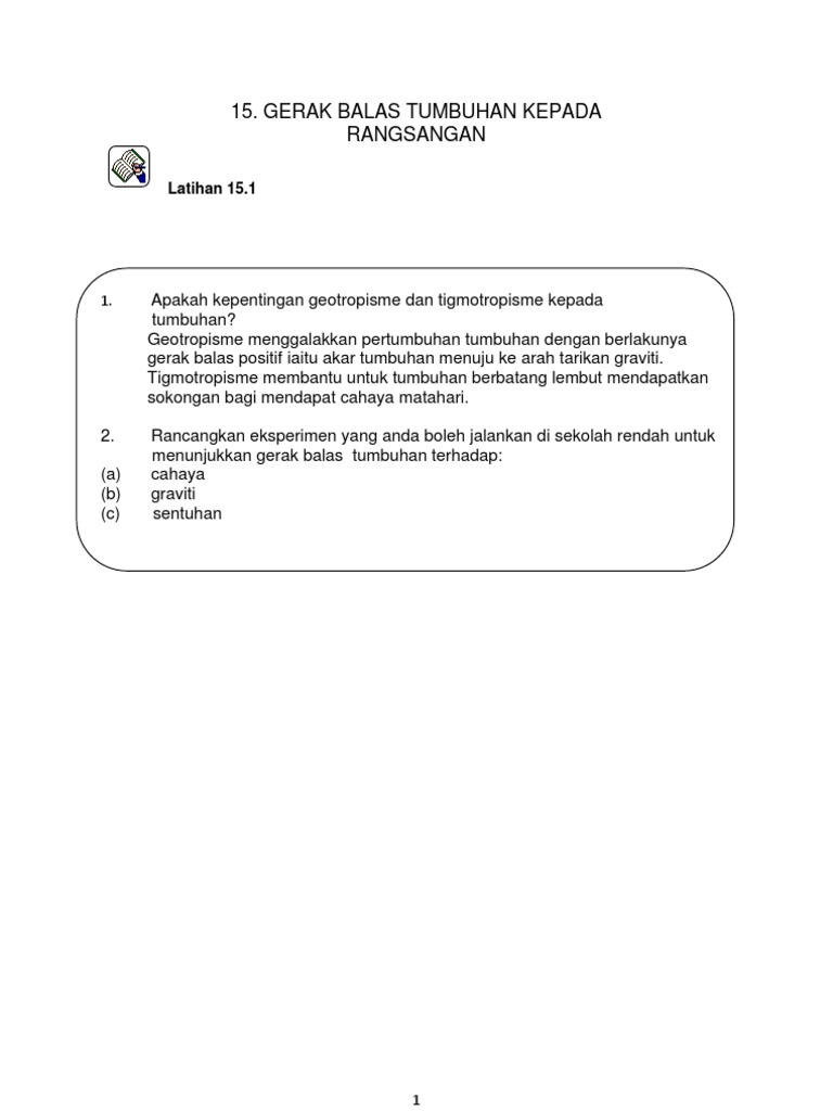 15 Gerakbalas Tumbuhan Kepada Rangsangan