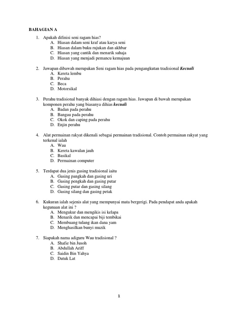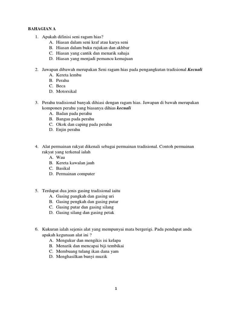 Ejercicio De Ting 2 Tajuk 1 Seni Ragam Hias Pengangkutan Alat Permainan Rakyat Dan Alat Domestik