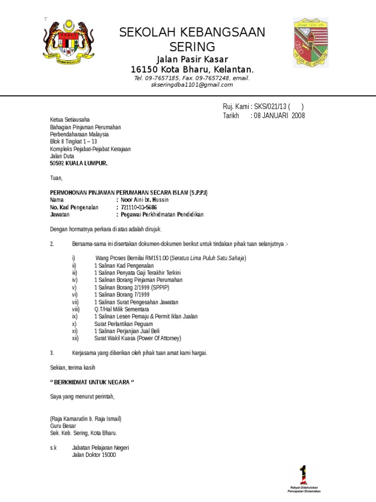Surat Iringan Pinjaman Perumahan Kerajaan