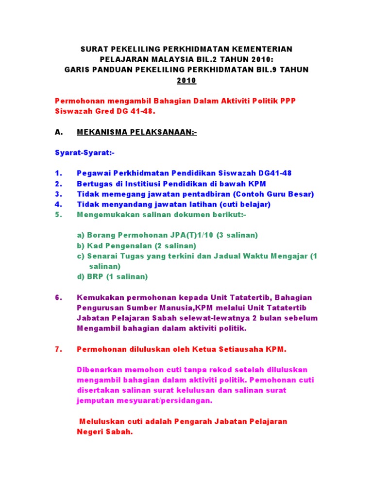 Surat Pekeliling Perkhidmatan Kementerian Pelajaran Malaysia Bil