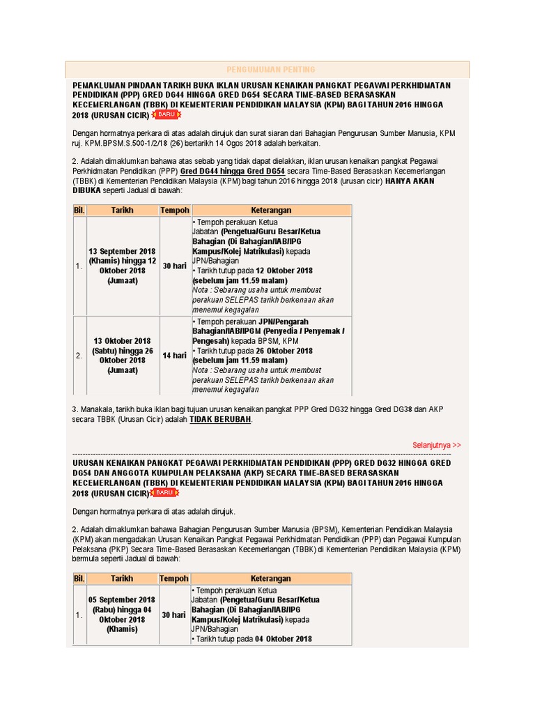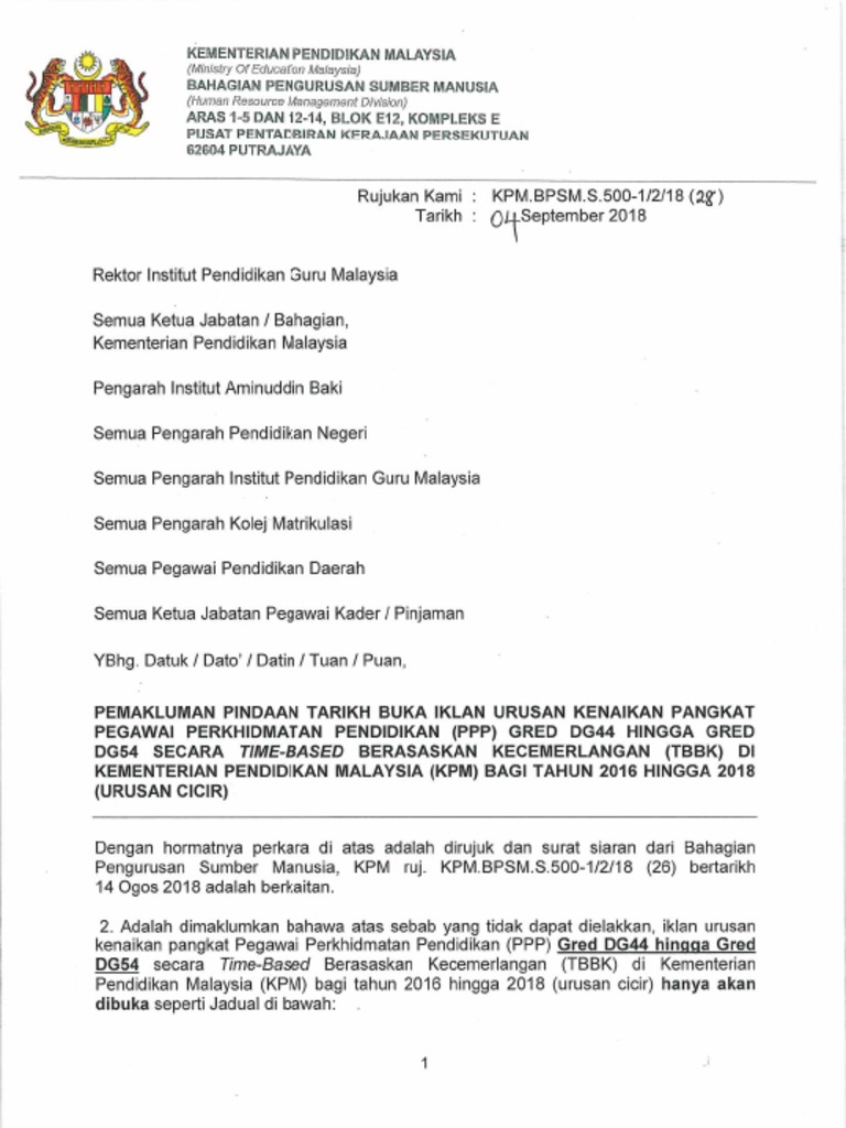 Surat Hebahan Kenaikan Pangkat Pegawai Perkhidmatan Pendidikan